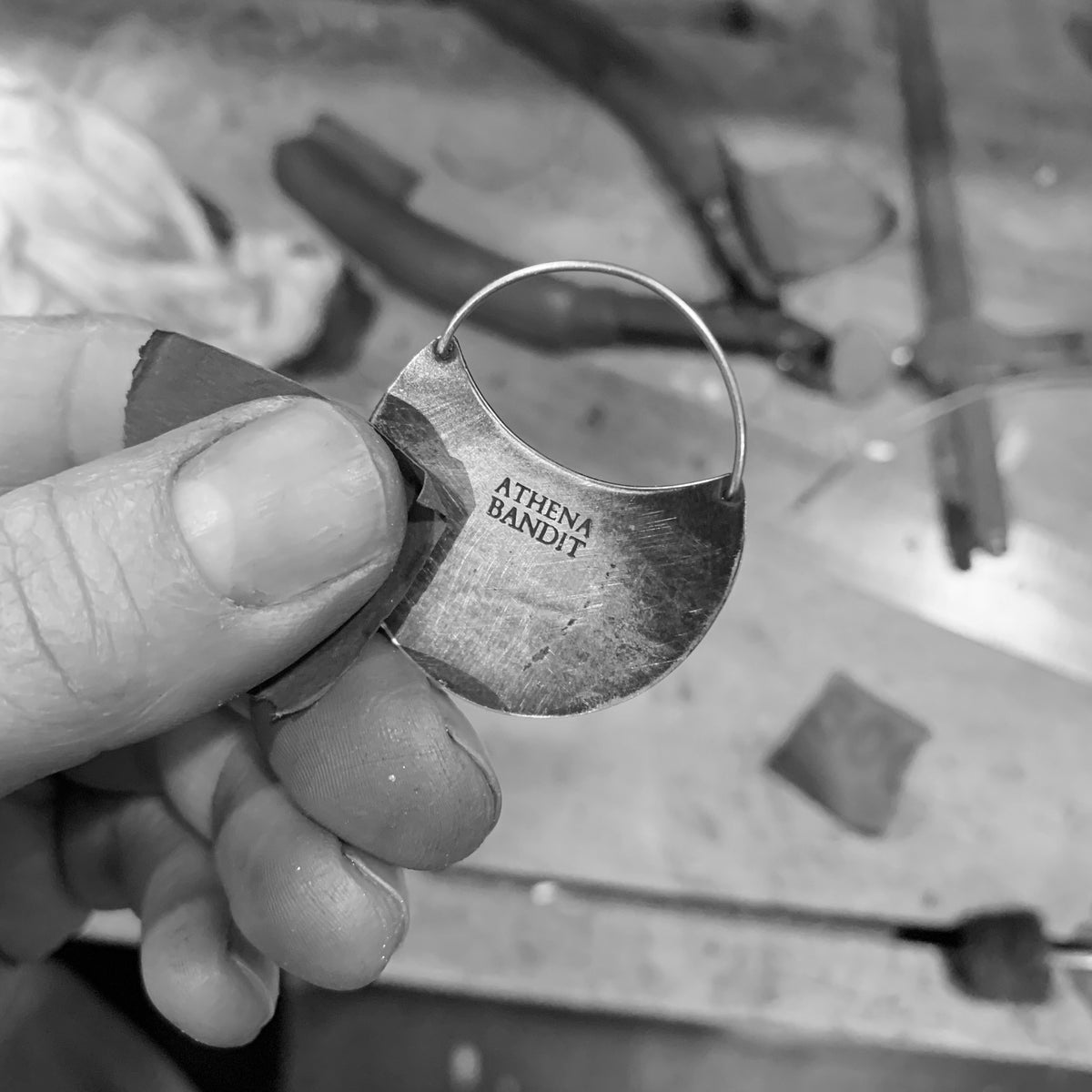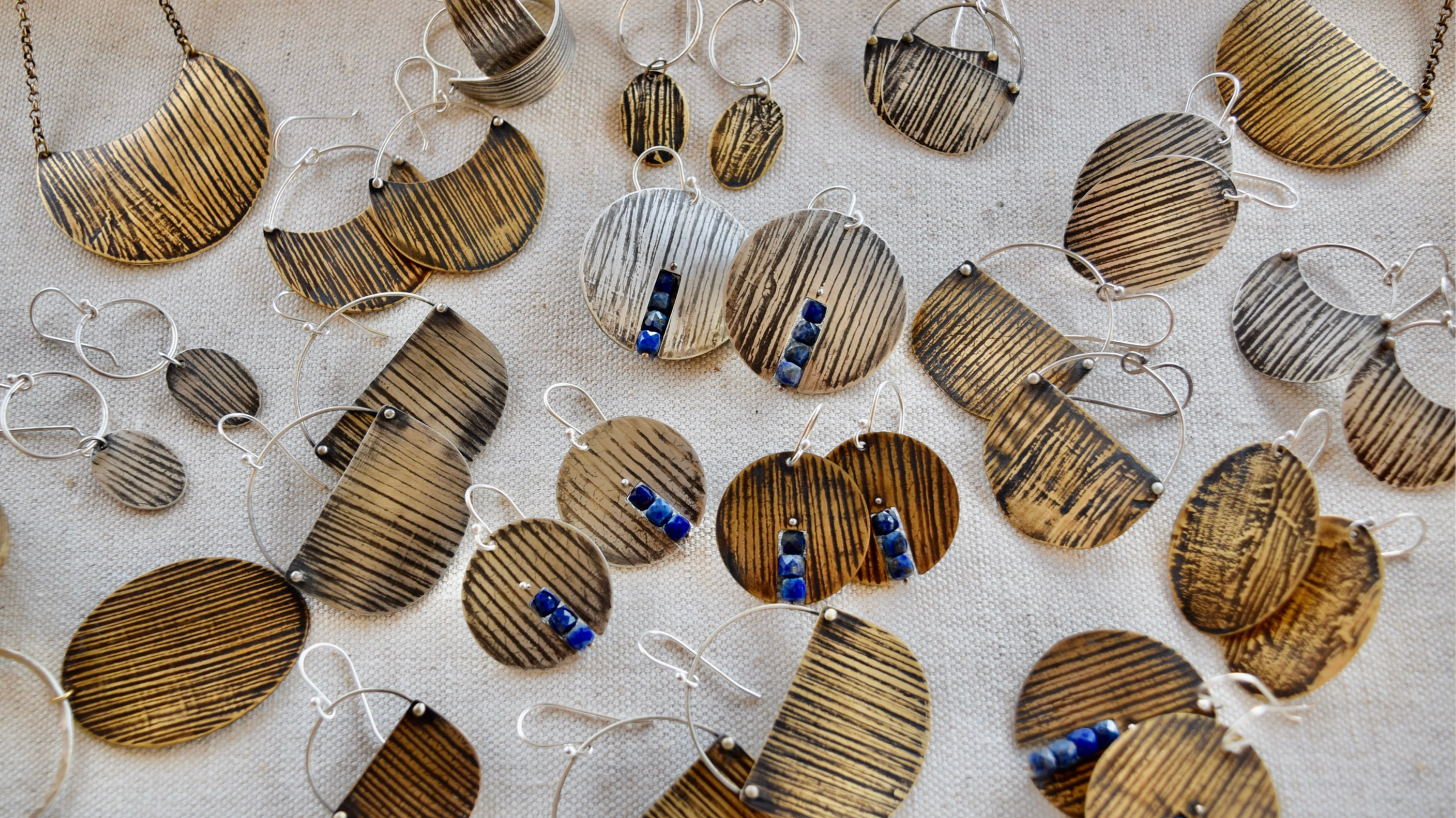 I work with sterling silver and brass, often adding 23K gold through the centuries-old technique of Keum-Boo. Sometimes I set unique stones for one-of-a-kind pieces, but whether simple or intricate, each design begins with the same dedication to craft. My tools are traditional—hammers, anvils, rolling mills—and my methods are intentional, with minimal chemicals, recycled metals, and ethically sourced stones.